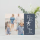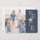 Beachy holiday photo card with a rustic flair features your favourite photo with "peace" alongside in white lettering on a harbour blue background. A starfish takes the place of the letter "A" for a cute coastal touch. Personalize with your names beneath, and add two additional photos and a personal message to the back if desired.
