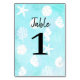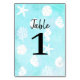Pretty Blue and Teal starfish, seahorse, seashells and coral Wedding Table Number Cards