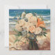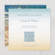A wedding QR code enclosure card featuring a coastal theme, adorned with a bride's flower bouquet embellished with exquisite starfish, showcasing a harmonious combination of beige, orange, and blue roses. The design exudes an artistic flair, reminiscent of an oil painting, lending the card a distinct style that is both sophisticated and elegant. This unique and special card design is crafted exclusively for a special bride. The entire set of design cards is accessible in the same design.