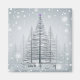 Season of Joy Winter Trees Magnet - In muted silver blue colours, a stand of line art pine trees - the front tree decorated in sparkling purple stars - standing in a snow scene done in bokeh style - Season of Joy written in a hand scripted calligraphy