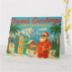 Bring California sunshine to the holidays with this fun and festive card! Santa, in shades and a Hawaiian shirt, enjoys the winter beach scene with decorated surfboards, palm trees, and snowy mountains. A cozy, snow-dusted cabin adds warmth to the playful mix. Ideal for surfers, beach lovers, or anyone who prefers their Christmas with a dash of coastal cheer.