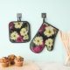 Safely handle baking trays, cookie sheets and muffin tins from the oven with this pot holder set black trim that features a photographic image of red and white, seasonal Holiday Poinsettias. A festive, botanical design for the seasonal holidays! Select from square pot holder style or oven mitt style, or order a set of both. Image printed on one side only.