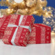 Christmas colours red and nearly white, makes a nice and traditional combination. Ornamental strings printed in very light brown, appearing as white, on a bright red background. The default greeting is "Happy Christmas", but you can adjust it in any way you like. Text can easily be customized, and you can even remove the greeting for a cleaner result. Background colour can be adjusted, too!