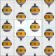 Pattern based on Christmas tree decorations, coloured purple and yellow. This design also come in other colour versions, some with a more and less seasonal touch.