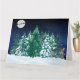 A quiet, snowy forest. In the sky, a sleigh and 8 reindeer silhouetted against the full moon. In the forest, someone, or something, is stirring.