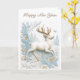 This winter-to-spring New Year card showcases embossed textures with crisp definition and layered depth. Centrally positioned, a stag moves forward across a bright white landscape, where subtle shifts from snowflake white to early-spring blue signal the changing season. A butterfly rises ahead, not as quarry, but as a symbol of renewal. The three-dimensional collage style is both true to life and visually balanced. Created by Susang6 through language-guided AI (not prompts), this assisted-art image required three edits to achieve its final form. It is ideal for those who appreciate technical artistry. Presented as a template, this seasonal collage is ready for customization. Personalize it for business or personal use, or transfer the artwork to another product; the choice is yours.