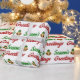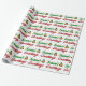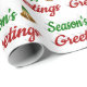 Wrapping paper with season's greetings in 3D green and red text and Christmas bells. Available in several styles and sizes.