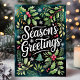 Send warm holiday wishes with this beautifully designed "Season's Greetings" card. Featuring a lush arrangement of holly, evergreen branches, berries, and snowflakes, this card captures the essence of the festive season. Perfect for sharing joyful greetings with family, friends, or colleagues, this card will brighten anyone's holiday spirit.