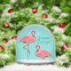 Seasons Greetings Flamingos Retro Christmas Snow Globe will add a touch of midcentury Miami color pop to your holiday decor. Perfect for your Christmas mantel display, a holiday accent for your bathroom, or a little bit of fun when you're on your patio enjoying a delightfully warm seaside Christmas Eve.
