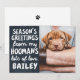 Design is composed of a dark background with a funny message --- "Season's Greetings from my Hoomans"