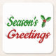 Seasons Greetings Holly Christmas red green script Square Paper Coaster