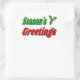 Stickers with season's greetings in 3D green and red text and Christmas holly. Stickers are available in several shapes.