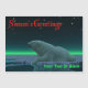 A peaceful moment in the long Arctic night. A Polar Bear (Urusus maritimus) rests at the edge of an open area in the pack ice. The Northern Lights glow in the distance; bright stars twinkle overhead. "Season's Greetings" appears in red. Add your own additional text.
