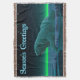 A peaceful moment in the long Arctic night. A Polar Bear rests at the edge of an open area in the pack ice. The Northern Lights glow in the distance; bright stars twinkle overhead. "Season's Greetings" appears in glowing blue and white. Polar bears are endangered. How much longer will scenes like this be able to occur? Please help save Polar Bears from extinction.