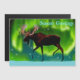An ever so slightly stylized image of a moose silhouetted against the Northern Lights. "Season's Greetings" appears in glowing blue and white.