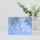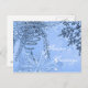 blue postcard with images of winter and text Season's Greetings