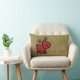 A lumber pillow with a red Christmas reindeer illustration. Festive and cute. The background is a digital image of brown kraft paper. Customizable text reads: Seasons Greetings.