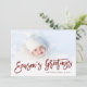 Season's Greetings Red Script Photo Overlay Holiday Card