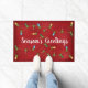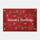 Colourful string of Christmas lights on red with Christmas Season's Greetings text.