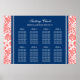 Elegant and contemporary customizable eight table 80 guest seating chart for wedding in modern dark navy blue and white classic floral damask vintage pattern. Customize with your guests name to make a unique seating chart for your wedding. Contact us for a custom chart for a different number of guests.