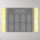 Elegant and contemporary customizable eight table seating chart for wedding in modern bright lemon yellow, grey and white classic floral damask vintage pattern. Customize with your guests name to make a unique seating chart for your wedding. Contact us for a custom chart for a different number of guests.