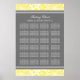 Elegant and contemporary customizable alphabetical seating seating chart for wedding in modern bright lemon yellow, grey and white classic floral damask vintage pattern. Customize with your guests name to make a unique seating chart for your wedding. Contact us for a custom chart for a different number of guests.