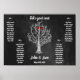 Elegant Tree and red hearts theme seating chart poster, template text for four tables with guest names.