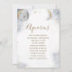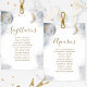 Help your guests find their table with this elegant silver and gold moons and stars celestial seating plan cards with constellation table name and guests names. Same design with table numbers instead of constellation name also available. Double sided cards so guests can look from both, front or back for their names. Clear space all around giving you the liberty to use clips or punch hole for hanging displays, or use table holder/frame. Delicate watercolor celestial background with dainty gold and white stars and full moon on one side and a quarter moon on the other. Modern hand written calligraphy details. Stars and details in moons in faux gold foil. Please place one order for each of your table seating cards, add into your shopping cart and then return to add new names and new table number. Repeat the process until all your table numbers are done. Part of our" White, Gold and Silver Celestial Stars and Moon" collection with a variety of coordinating products available. Visit the entire collection at: https://www.zazzle.com/collections/gold_white_and_silver_celestial_stars_and_moon-119446192561160871