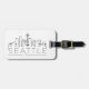 A unique luggage tag representing the beautiful city of Seattle, WA. This tag features a stylized illustration of the city's unique skyline with its name underneath.