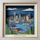 A cute 3D layered paper diorama of Seattle, Washington in United States. Crafty people who like collages and layered paper art will love this American city skyline cityscape. There is Puget Sound with ferries and sailboats, the Space Needle, Pike Place Market, trees and green spaces, and Mount Rainier against a blue sky with clouds in the background. As well as many other important Seattle buildings and landmarks. Just a cute and kitschy artwork celebrating some of the best landmarks that Seattle, USA has to offer. I have many similar artworks like this one in the 'Layered Paper Diorama Art' Collection in this shop! The words 'Seattle, Washington' are written at the bottom, but you can easily change the words to something more personal to you. Like your name, or you can add the year (if you traveled there yourself) or a short meaningful quote or travel phrase.