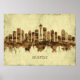 Vintage Skyline of Seattle, city on Puget Sound in the Pacific Northwest