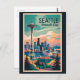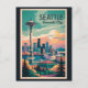 Seattle retro vector travel design. Seattle, the emerald city of the Pacific Northwest, is known for its iconic Space Needle, vibrant arts scene, and waterfront charm.