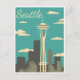 vintage, retro, travel, modern, watercolor, classic, Washington, Seattle, united states,