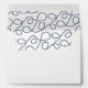 Coastal chic white envelopes for your 5x7 wedding invitations feature your return address pre-printed on the back flap in navy blue lettering. Envelopes open to reveal a pattern of looping nautical rope in navy blue on white. Designed to match our Seaworthy wedding and event invitation collection.