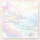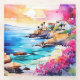 "Secluded Beach". A Secluded Mediterranean beach with a tranquil blue sea is framed by pretty pink and purple blooms. A quiet and relaxed place for contemplation.