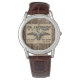 The watch looks really great! Very sharp and well done. The leather band is really nice, though for a man's watch I think it should be longer. Unfortunately, it isn't big enough for my husband's wrist but I will get a replacement because he is very excited to wear it!