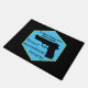 Fun but serious mat in support of the second amendment with an icon of a handgun silhouette and the text "24 hour protection provided by 2nd Amendment Security.