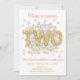 Second Birthday Invitation Girl Pink Gold Mint Two