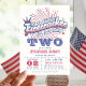 Get ready to light up your little one's second birthday with this fun and unique "Little Firecracker" themed invitation! It's the ultimate way to celebrate during the most patriotic and festive times of the year! The design blends red, white, and blue with a sparkler pattern that screams excitement. The title "Our little firecracker is turning Two!" says it all – this birthday party is going to be explosive!