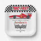 Start Your Engines for Fun! Invite friends and family to race on over for an unforgettable first birthday bash with our graphic-style race car paper plates. Featuring a red racecar zooming across a crisp white background, the bold "Fast One" text in cartoon font creates a lively and energetic vibe. The party details are elegantly displayed in a serif font for a balanced, easy-to-read layout. This napkin will have everyone excited to join the race!