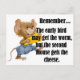 Cute mouse, cheese and humour about the Early Bird. Text says ... The early bird may get the worm, but the second mouse gets the cheese.