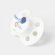 Tétine lunatique de bébé faite dans le blanc, avec des graphiques d'un hochet bleu, vert, pourpre et jaune de bébé. Le texte bleu d'amusement lit la secousse il bébé. Produits assortis de hochet et de petit pain de secousse disponibles.