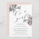 Simple and elegant baby shower invitation features "it's a girl" in chic off-black modern calligraphy lettering, flanked by vintage style floral outline illustrations on a sheer wash of blush pink watercolor. Personalize with your baby shower details beneath. Baby shower invitations reverse to solid blush pink. Customize the paper type or shape to make this elegant design your own.
