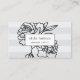Elegant business card design features two lines of custom text on a pale grey striped background with off-black floral outline illustrations. Add your full contact details to the reverse side. These unique business cards make a chic choice for event planners, makeup artists and many more occupations.