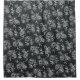 Chic shower curtain in rich, inky off-black features an allover pattern of white flower outline illustrations.