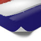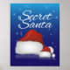 Secret Santa in white and blue with red pair of santa hats. A great idea for a secret santa party, shop or special event at the corporate office or in the community.