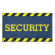 This identification tag features a "SECURITY" title across the centre, printed in a bright yellow font over a navy blue background. A yellow and black striped caution strip is placed across the top and bottom portions. This tag will help to easily identify your security guard employees at your company.