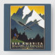 See America - Welcome to Montana Poster for United States Travel Bureau promoting travel to Montana, showing mountain scene with horse and rider.