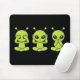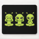 Add a playful extraterrestrial twist to your workspace with this mouse pad featuring three green aliens embodying the classic “See No Evil, Hear No Evil, Speak No Evil” pose. Each character is full of personality—one covering its eyes, another its ears, and the third its mouth—bringing a fun, quirky vibe to your desk while subtly reminding you to keep things positive. Perfect for gamers, creatives, or anyone who loves a touch of humor and sci-fi charm in their setup.