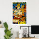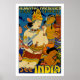 Vintage travel poster promoting travel to India and the Ajanta Frescoes and Cave Temples.